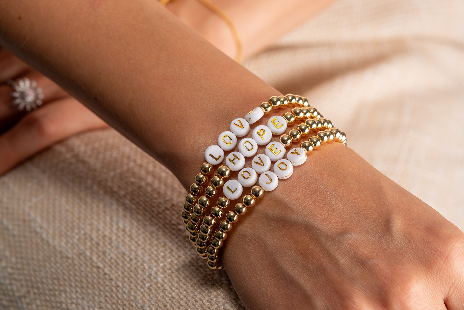 Beaded Bracelet, Elastic / 14K Gold Plated